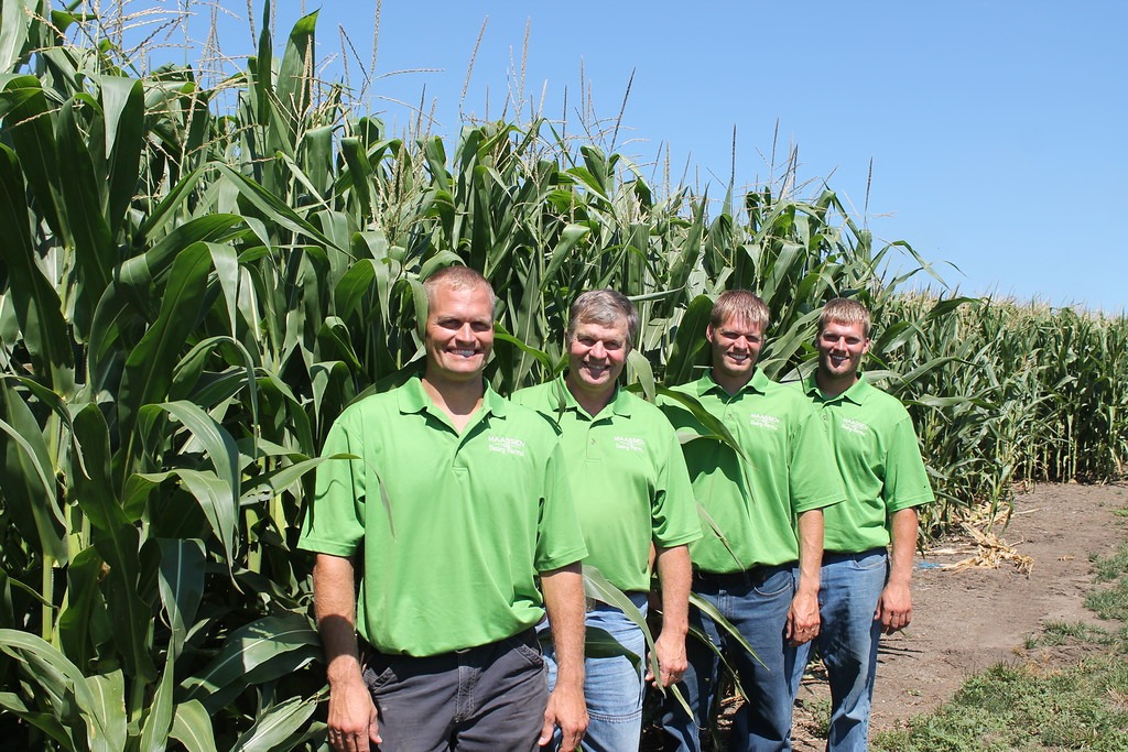 The Maassens’ leadership in sustainability has not gone unnoticed. In 2014, the dairy was selected to be part of a five-year project by the Iowa Department of Ag and Land Stewardship to showcase agronomic farm practices. In 2016, they were awarded the Iowa Venture Award by the Iowa Area Development Group, recognizing their innovation and entrepreneurial leadership. In 2016, they hosted an open house attended by 1,700 community members as well as Gov. Terry Branstad of Iowa. Later that year, they hosted an open house at their cover crop test plot in cooperation with the Farmers Co-Op Society of Sioux Center. The Maassens regularly host students of all ages and offer virtual tours of the farm through the Siouxland Ag in the Classroom program. Lee and his sons continue to serve the dairy industry through leadership on numerous boards and prioritize sharing their dairy story with consumers through social media and local events.